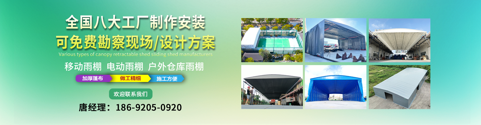 湖南鑫建華鋼結(jié)構(gòu)工程有限公司是一家電動(dòng)雨棚、膜結(jié)構(gòu)車棚研發(fā),生產(chǎn)銷售,施工安裝于一體的專業(yè)鋼結(jié)構(gòu)科技公司,主要產(chǎn)品有伸縮雨棚,電動(dòng)雨棚,膜結(jié)構(gòu)車棚等?! 『系貐^(qū)職員目前有200多人,自建廠房15600平方米,配備先進(jìn)的生產(chǎn)流水線,使每件品質(zhì)產(chǎn)品的堅(jiān)實(shí)基礎(chǔ)?! 」驹诤怅枺K州,天津,濟(jì)南,鄭州,江門,佛山,武漢,重慶均設(shè)有服務(wù)工廠,擁有專業(yè)的技術(shù)團(tuán)隊(duì),配備先進(jìn)的設(shè)備和流水線生產(chǎn),產(chǎn)能高,貨源充足,發(fā)貨速度快,服務(wù)區(qū)域廣?! ∫苿?dòng)伸縮棚適用于通道臨時(shí)倉(cāng)儲(chǔ)、戶外運(yùn)動(dòng)遮陽、污水池遮蓋、能源交通、熱力化工、礦山、船舶制造及市政建設(shè)、物流、碼頭等領(lǐng)域的構(gòu)件制作加工,成品半成品存放、倉(cāng)庫(kù)、野外儀器設(shè)備操作用房等。尤其是對(duì)工廠發(fā)貨、倉(cāng)儲(chǔ)臨時(shí)遮雨防嗮,梅雨期較長(zhǎng)、建設(shè)周期較短的工程施工等特別適用。還可根據(jù)用戶需求量身定制、適合企業(yè)所需不同款式的產(chǎn)品?! ∥夜緢?jiān)持“誠(chéng)信社會(huì)為本,客戶滿意為榮”的經(jīng)營(yíng)理念,做到質(zhì)量把控,嚴(yán)格管理,精益求精,恪守承諾。使鑫建華逐步走向成熟,其系統(tǒng)化、專業(yè)化日趨完善。以專業(yè)的技術(shù)、科學(xué)的管理,更高的產(chǎn)品質(zhì)量,優(yōu)良的企業(yè)信譽(yù),真誠(chéng)的客戶服務(wù),靈活多樣的經(jīng)營(yíng)方式和務(wù)實(shí)創(chuàng)新的企業(yè)精神愿與社會(huì)各界攜手合作,為推動(dòng)智能鋼結(jié)構(gòu)建筑事業(yè)的發(fā)展而不斷努力。...